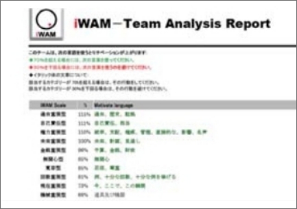 アイワムプログラムは、最先端の言語科学を駆使したモチベーション・ファインダー 「アイワム診断テスト」を活用したプログラムです。 スタッフ一人ひとりの『思考スタイル」を48の項目で可視化。